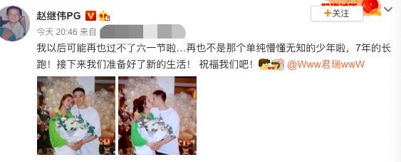 从赵继伟的配文中得知,他和女友已经恋爱长跑了整整7年,现在两人终于迈入了一个新的阶段,也不难理解他的激动之情。