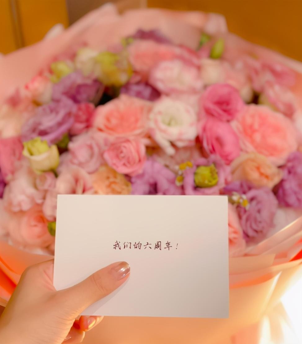 赵继伟即便工作再繁忙,在纪念日的时候也不忘给王君瑞送上一大束玫瑰花和小卡片,庆祝两人在一起度过六年时光。