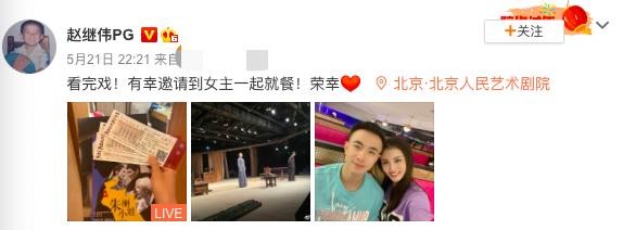 王君瑞有演出活动的时候,赵继伟也会特意去观看未婚妻主演的话剧,在网上宣传,秀一波恩爱为对方加油打气。