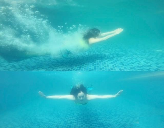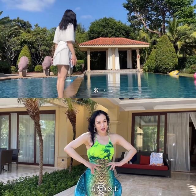 往日电影里的片段,与现在游泳的场景完美地拼接在一起,毫无违和感。钟丽缇换上人鱼装,在水里挥动着纤细的手臂,心情十分愉悦。