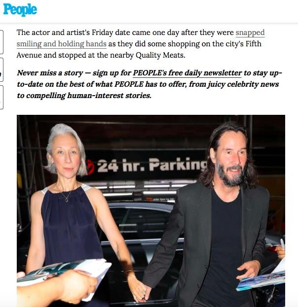 (日前,基努·里维斯和亚历山德拉·格兰特出现在纽约,引来了PEOPLE的特别关注)