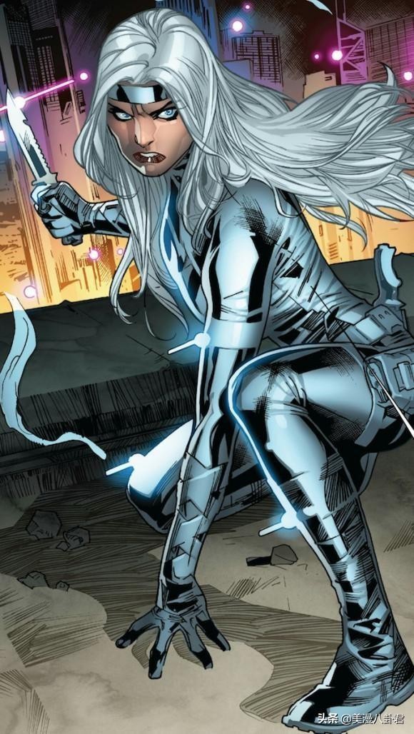 一个正义的佣兵,手法过于残忍不受超级英雄们的待见,但经常和蜘蛛侠联手对抗国际敌人,银貂也承认她对蜘蛛侠有超越战友的感情,但由于她消失了一段时间,彼得以为她死了,又遇到了mj,他俩的感情也就慢慢变淡了,但依然是战友。