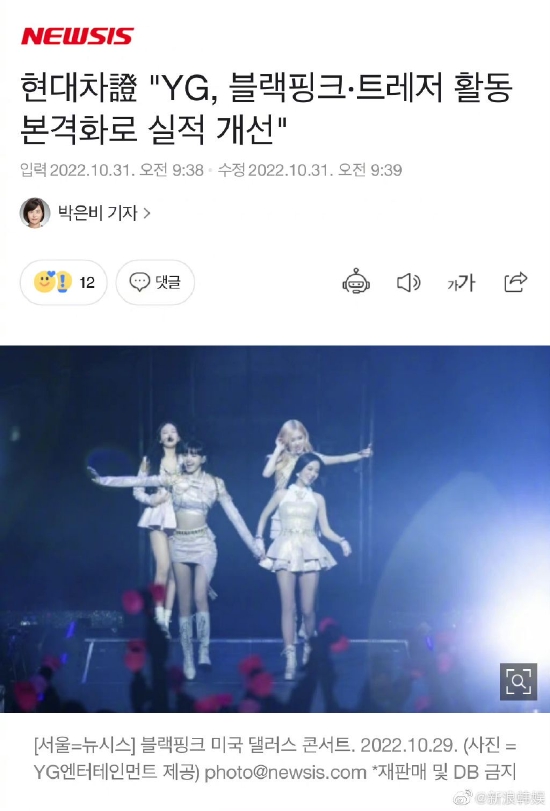 他解释说:“TREASURE本月发行的迷你2辑初动为40.3万张,与2月发行的54万张专辑相比多少有些遗憾。演出吸引力方面,判断正在跟随顶级明星的成长轨迹,预计明年出道的新人女子组合Baby Monster也将以BLACKPINK的光环效果迅速加入主力女子组合行列,为业绩成长做出贡献”。