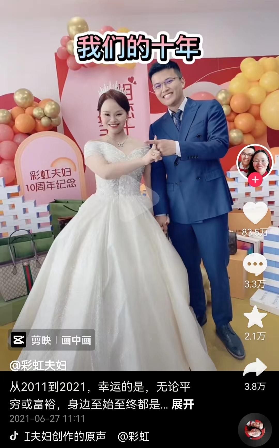 彩虹夫妇在成为网红也是凭借一条视频,这条视频讲述了两个人过往十年的奋斗历程,毕业后两人进入门槛较低的保险行业,从没有客户的业务员升职为高级经理,慢慢有了房子车子和孩子,每月的结余也能补贴父母,相互扶持在城市扎根。