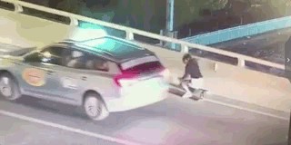一段拍摄于4月17日的现场监控视频显示,在车流中,一辆白色小轿车打着双闪停在路中,一名女子从轿车左侧进入主驾位置。数秒钟后,有人从轿车左侧走出,然后快跑至桥边纵身跃下。女子紧随其后,试图将其拉住,但未果。