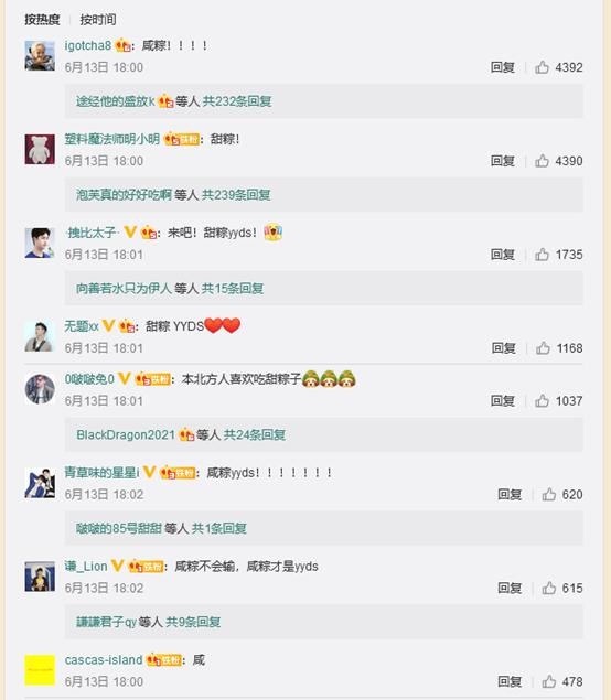 中新智库网 2021年6月14日报道 人民网官方微博于2021年6月13日18:00在新浪微博发起主题为【甜粽vs咸粽,你更爱哪个?】的投票。截止到6月14日凌晨3点已有10万人参与投票,其中投票“甜粽最牛不解释”的有4.8万人,投票“咸粽才是yyds”的有5.1万人。微博点赞11.7万人,还有大量网友在留言区展开激烈的争论。