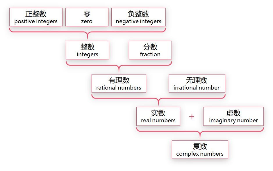 虚数(imaginary numbers)是人为构想出来的数字,其因此得名;和虚数相对应的,便是有理数和无理数,我们称其为实数(real numbers)。
