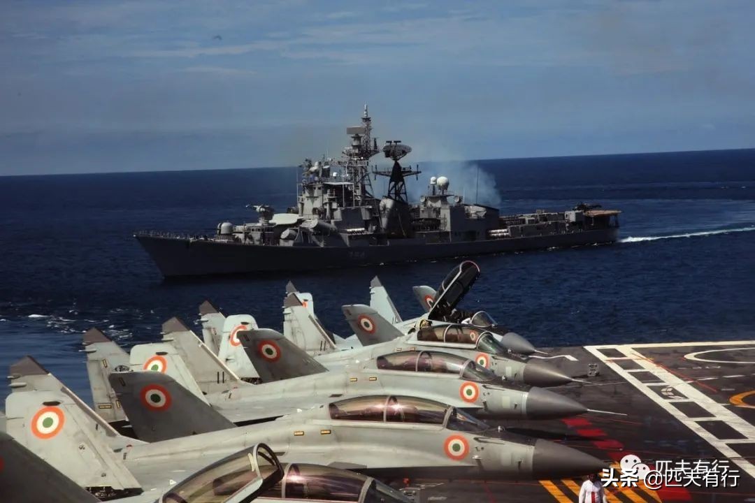 印度航母维克拉玛蒂亚号上的米格29K和米格29KUB战斗机。驶过航母尾部的是印度海军老旧的拉杰普特级驱逐舰兰维尔号。这三种老旧兵器的组合如果横亘在霍尔木兹海峡或者马六甲海峡,仍旧让我们头痛不已。在海军兵器上,我们已经开始拥有技术优势,资金优势,但是地理的劣势仍旧是我们占据的技术,资金优势目前无法彻底撼动的。