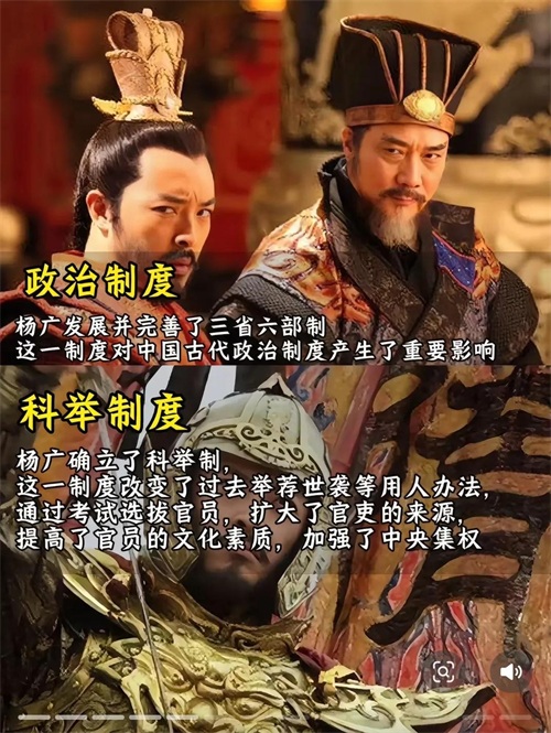 杨广在位期间,实施了一系列政治改革,试图提高中央集权,削弱地方割据势力。他重用能臣,设立了“开皇律”,进一步完善法律体系。此外,杨广还积极推动经济发展,鼓励农业生产,修建水利工程,尤其是大运河的开凿,为南北经济交流提供了便利。