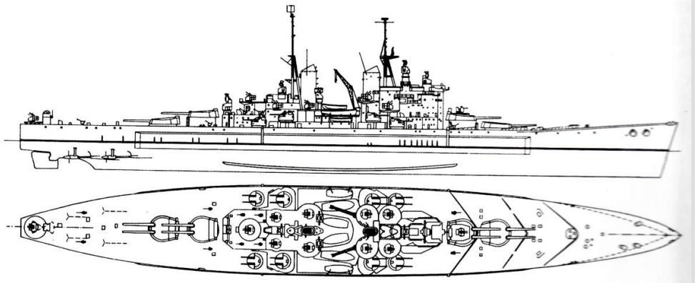 武备方面8门381毫米炮/L42 Mk l(4×2)主炮,16门133毫米炮/L50 Mk I(8×2)副炮,高炮方面更是丧心病狂的有着73门40毫米“博福斯”。高炮(10×6+1×2+11);防护方面,主装甲带有356-115毫米,装甲隔舱有着305-102毫米防护,甲板都有着160-45毫米。炮塔330-152毫米,炮座30-279毫米,司令塔76-25毫米。