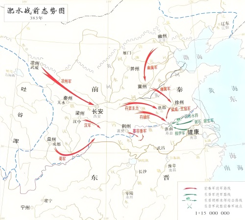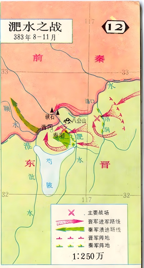 然而,淝水之战远不止是公元383年秦晋在淝水展开的一次战斗,而应被视为一个持续时间较长的战争过程——即前秦与东晋之间的一系列冲突。淝水之畔的那场战斗,实际上是整个秦晋战争的最后阶段,也是决定淝水之战成败的关键战役。