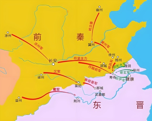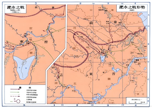 在这几场战争中,淝水之战与公元280年西晋灭吴之战最为相似,并成为苻坚制定战略规划的重要参考。