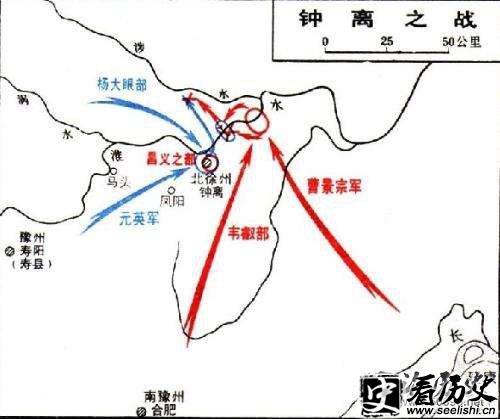 钟离之战也被称为邵阳之役。这场战役发生的地点以钟离城和附近的邵阳洲为主。钟离旁边就是淮水天险,易守难攻。钟离之战是梁武帝讨伐北魏期间最具有意义的战役,也是以少胜多的经典战役。结果南梁赢得了钟离之战的胜利。