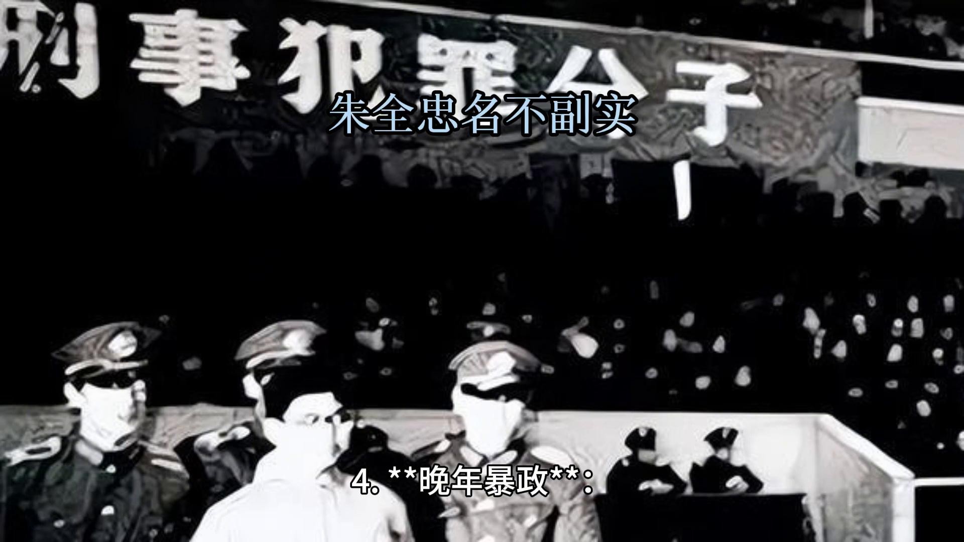 4. 晚年暴政:即位后的朱全忠并未能实现国家稳定与发展,反而因猜忌多疑而滥杀无辜导致朝局动荡不安。