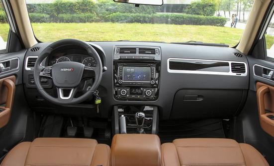 野马T70的内饰设计简洁务实,采用黑色+棕色的经典配色,整体视觉效果非常好,银色饰条搭配钢琴漆饰板使得整车看上去更加高档。值得一提的是,内饰大面积采用软质搪塑工艺材质,凡是手经常接触的地方基本都是软的,触感细腻舒适,在内饰用料方面也够有档次。