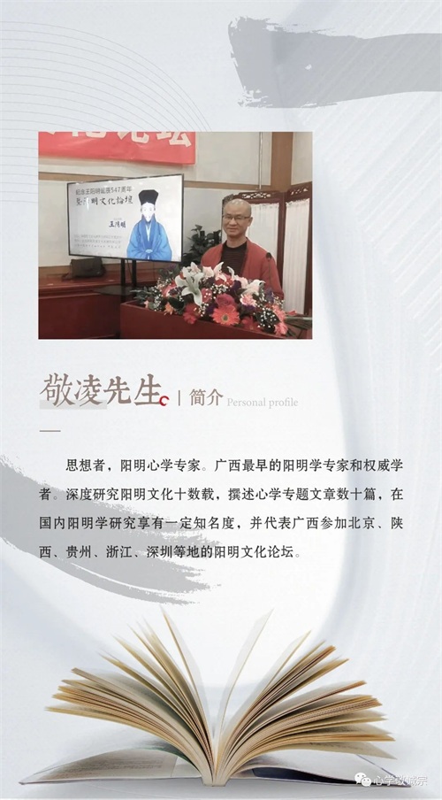 文化学者,心学专家。湖湘人,文艺学硕士,撰写专著多部,主张在心性经典的基础上重建新传统。