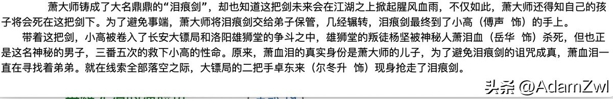 这是被低估的小说,也是一部被低估的电影,有英雄迟暮,铁汉柔情,也有男人之间的惺惺相惜,人在江湖身不由己的宿命,这是一部江湖感很强的武侠电影,年轻的赵雅芝饰演的蝶舞真是美不可言,浓眉大眼的尔冬升居然饰演最大的反派,也是一大看点。2005年焦恩俊的《泪痕剑》也是改编自这部小说,也值得一看。