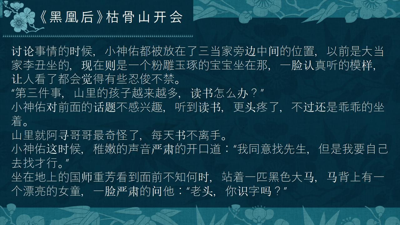 然后神女应乱世而生,应救民于水火之中。很快乱世变来了,越来越多的人聚集在蛮荒,包括老国师。而神佑女扮男装与三个哥哥来到了申国的申学——天下最高学府,各国皇家贵族子弟汇聚之地,神佑她要来救她的娘亲。