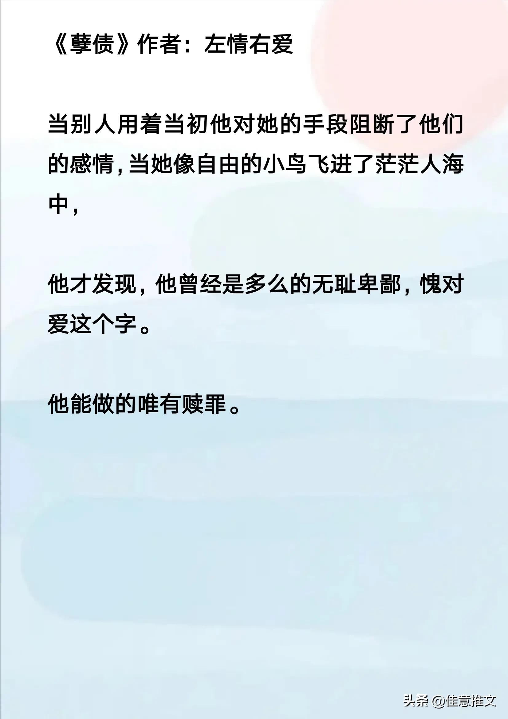 十部口碑言情小说推荐 1. 《那个不为人知的故事》by Twentine **标签**:现实向/虐恋情深 **亮点**:残疾缉毒警察 x 文物修复师,极致BE美学,文字细腻直击人心,后劲极大。 --- 2. 《打火...