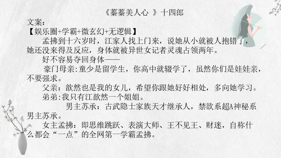18、 《蓁蓁美人心 》十四郎 连载中
