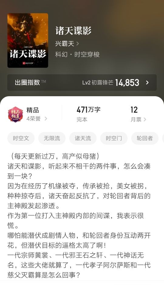 作为一本无限间谍文,无论是世界观论述还是完整而圆满的主线都是相当不错的,整本书基本智商在线,综合评价不错。