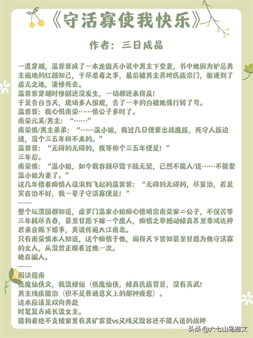 2.《守活寡使我快乐》作者:三日成晶