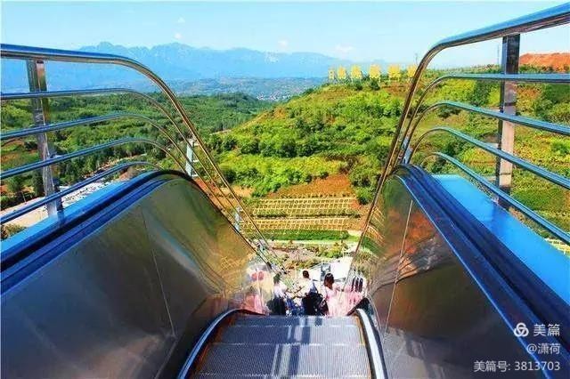 从宅子后面穿过就看到一个长长的观光电梯,从下往上望去如入云端。