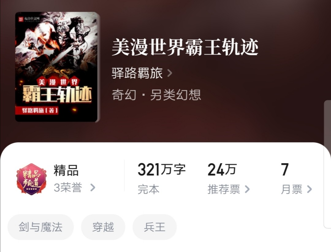简评:推这本书的同时推作者的后一本《美漫世界阴影轨迹》,算是一个世界观下的。这位上架百更,日常爆发的兼职肝帝,对于美漫和魔兽十分娴熟,本身的文笔也是带有浓重的史诗感和西幻风,重亲情是主角的一贯特点,但是杀伐果断,本书算是一位教父式的角色。