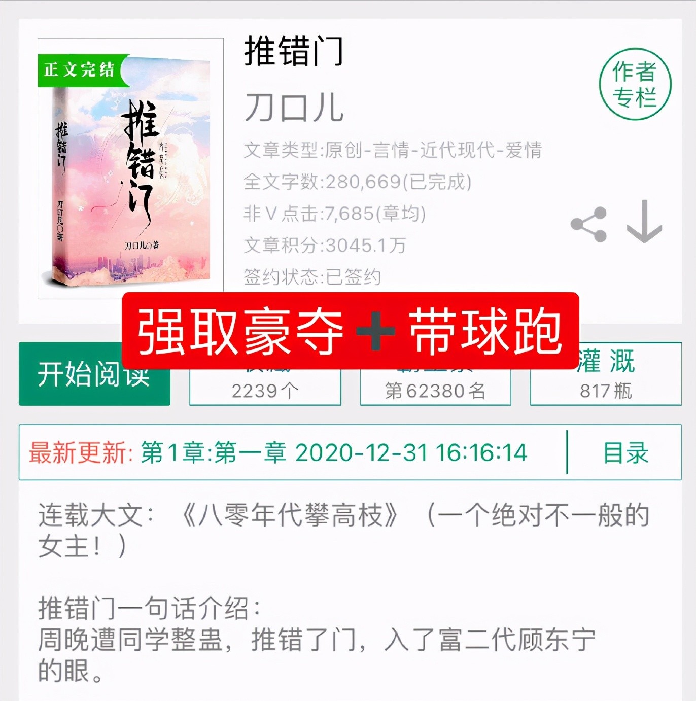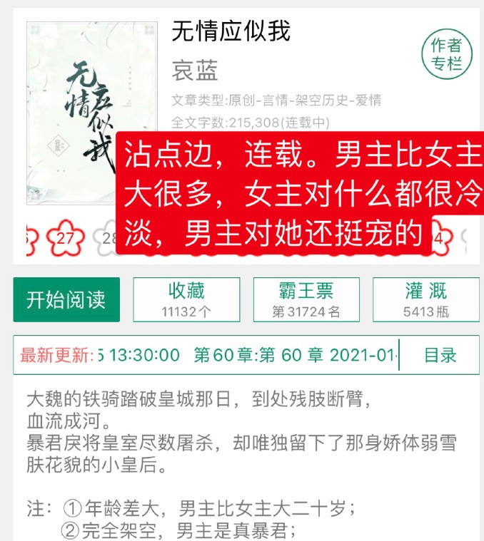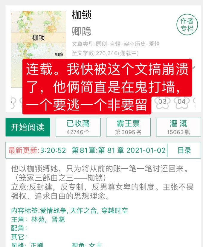 之前已经推荐差不多60本的强取豪夺的小说了,感兴趣的集美们可以去翻翻淘子的过往推荐,这里就不放出来了。下面推荐的是比较新完结的强取豪夺小说~希望大家喜欢,欢迎留言补充、排雷~卿隐的《枷锁》里面女主为了逃避男主嫁给了一个40多岁的鳏夫生了个儿子,就因为人家一夫一妻不纳妾……