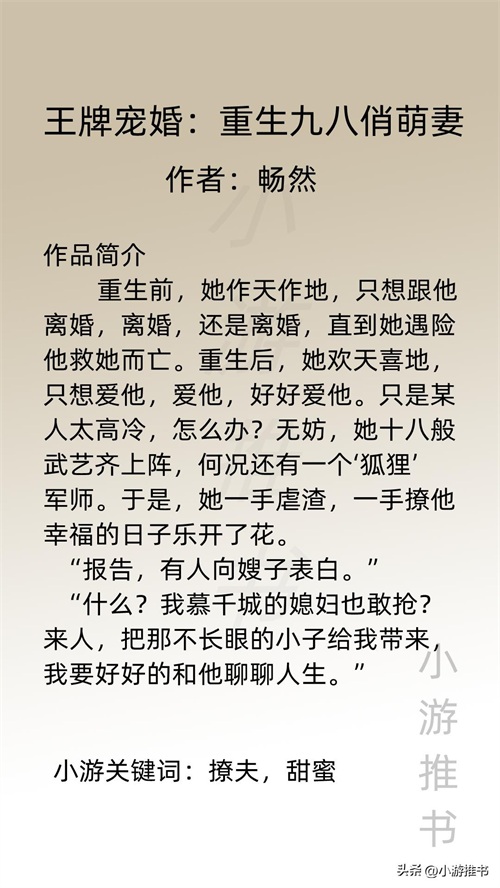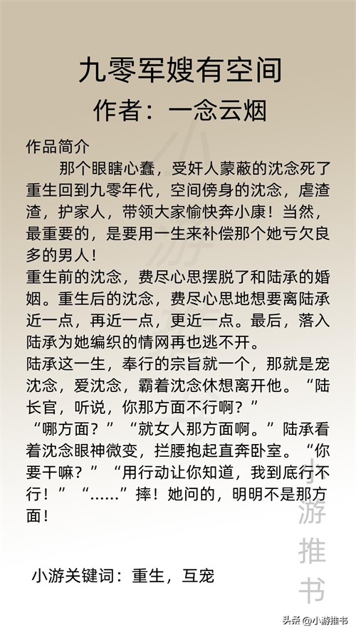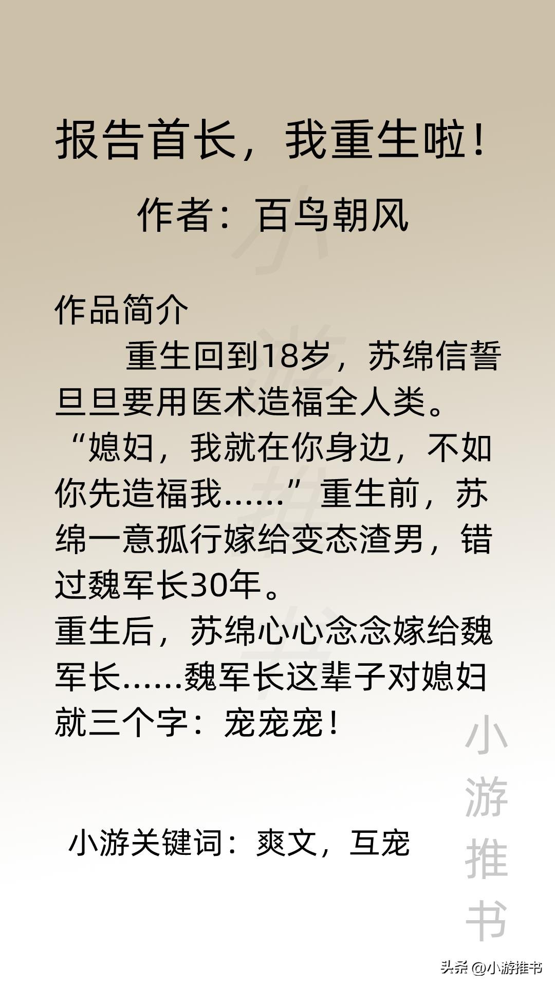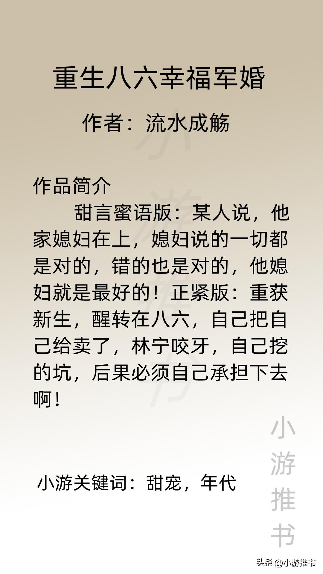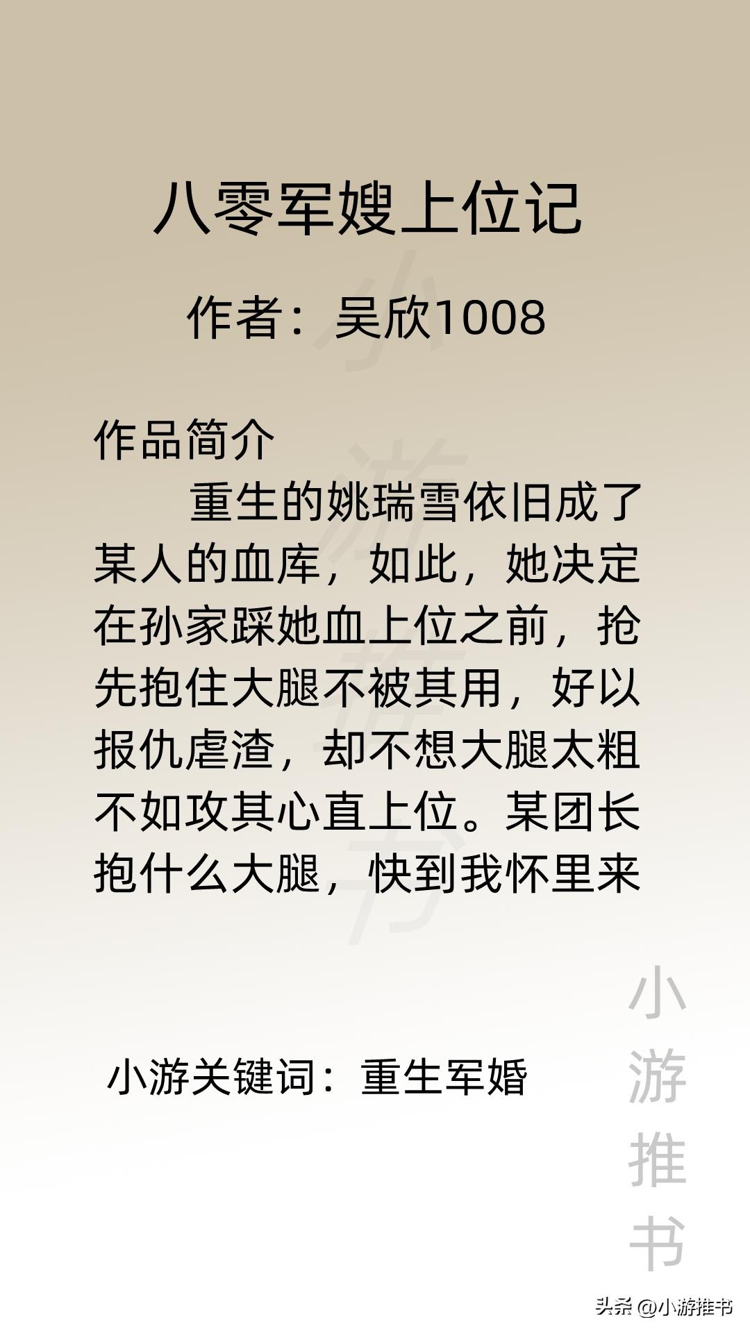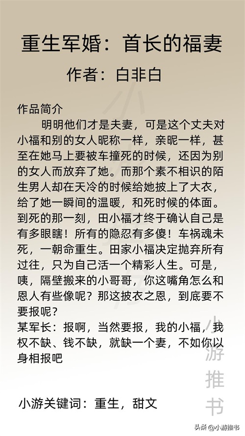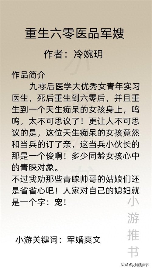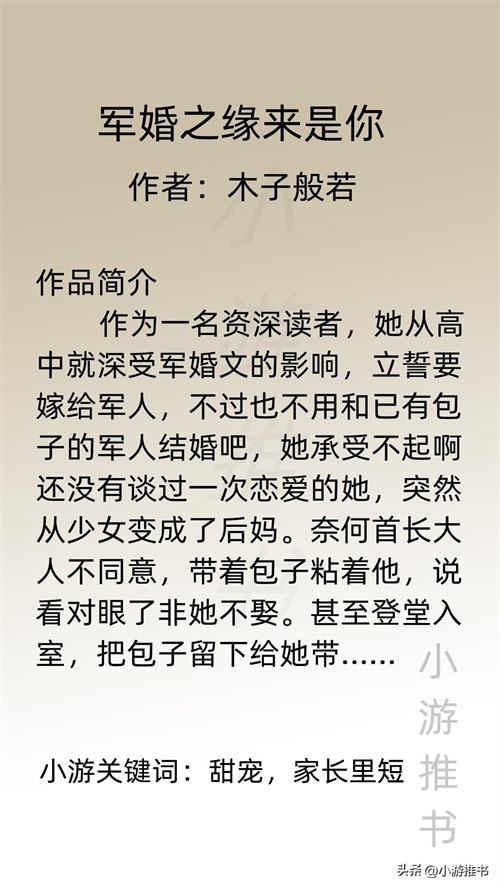 大家好,我是@小游推书,今日份是军婚系列小说,都是甜宠爽文,量大管饱,喜欢这类型的宝子们赶紧入坑吧!#军婚##小说推荐##言情#