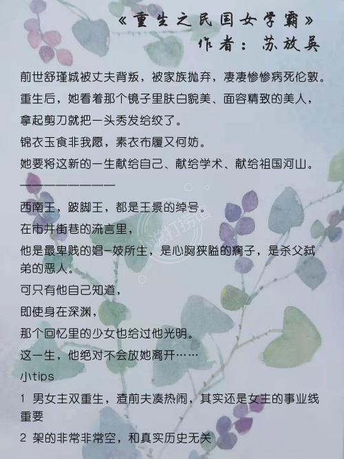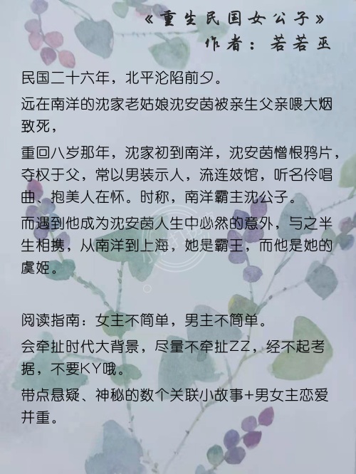 【前言】本期小馆打捞关键词:民国,主角重生。