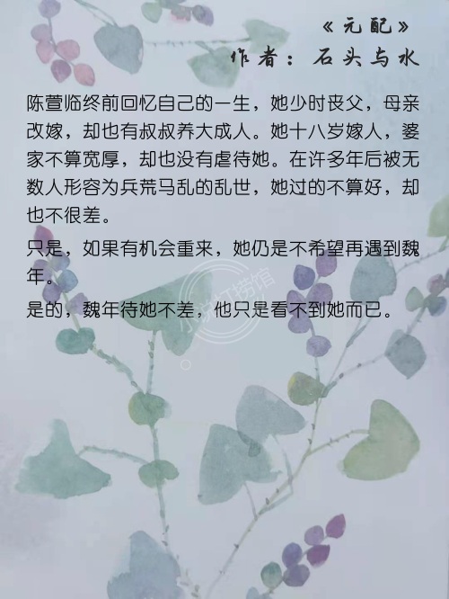 1.《元配》 作者:石头与水