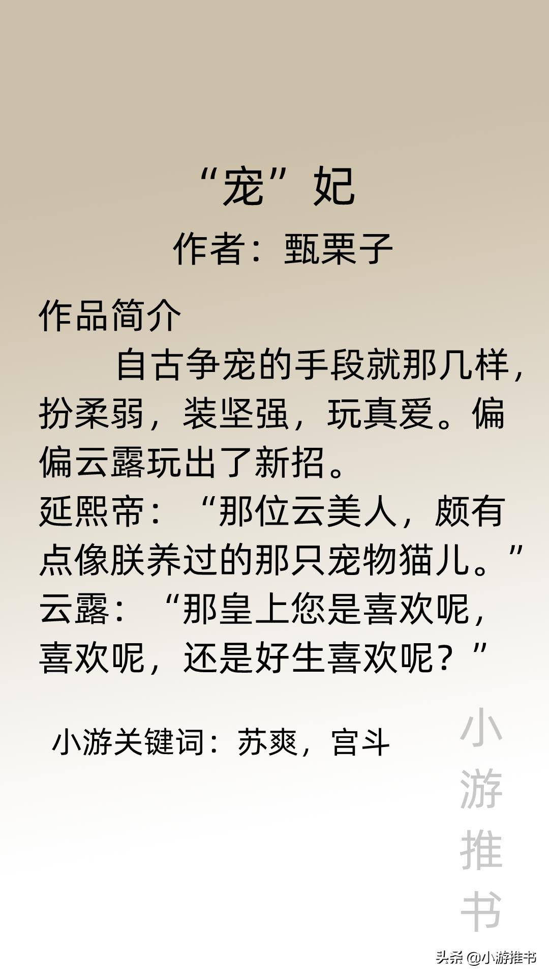 大家好,我是@小游推书,今日推荐本人超级喜欢的宫斗文系列,有系统,重生,穿越等元素,女主心机白莲花,在后宫成最后赢家,入坑不亏!