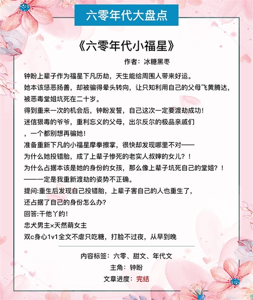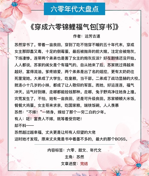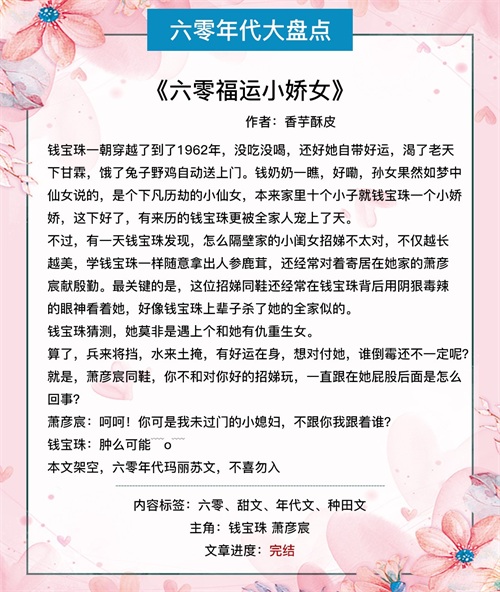 六零年代文!甜文!《六零有姻缘》《穿成六零锦鲤福气包[穿书]》
