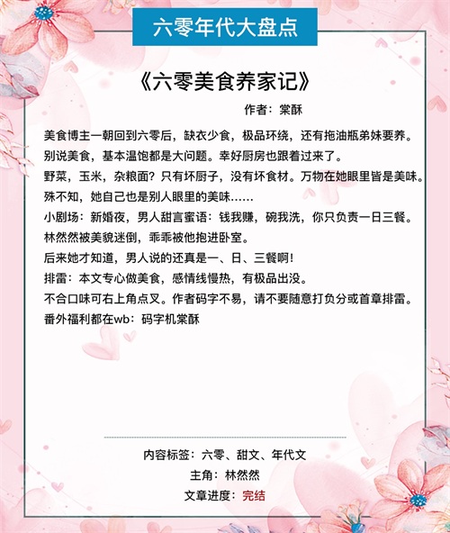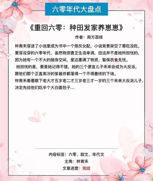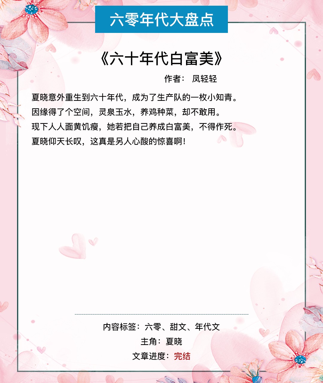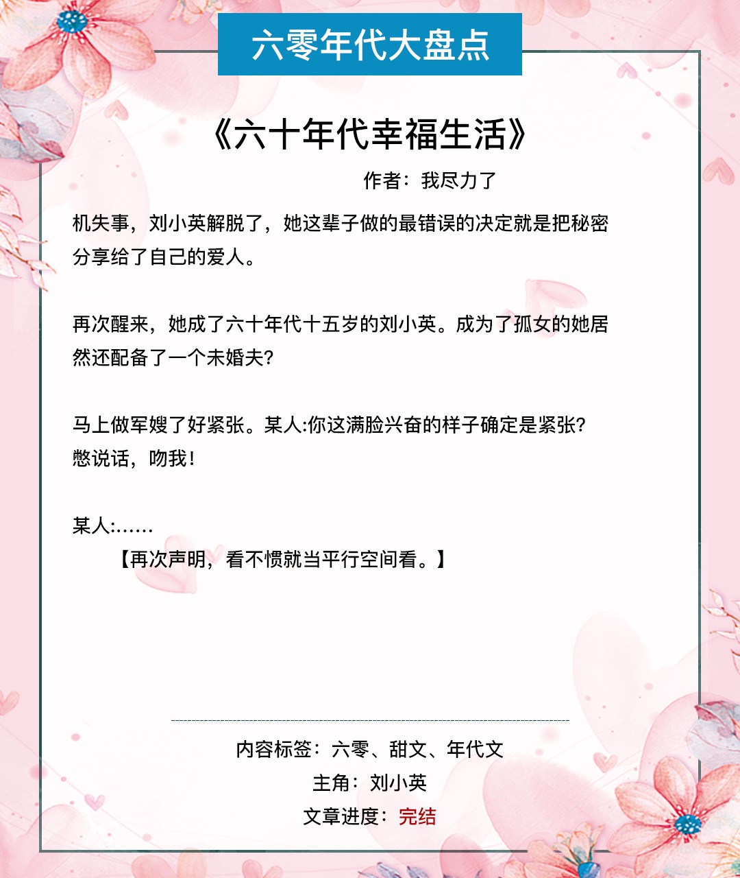 今天是六十年代文大盘点,年代文太泛滥了!很多作者的文笔都不错,希望大家喜欢。