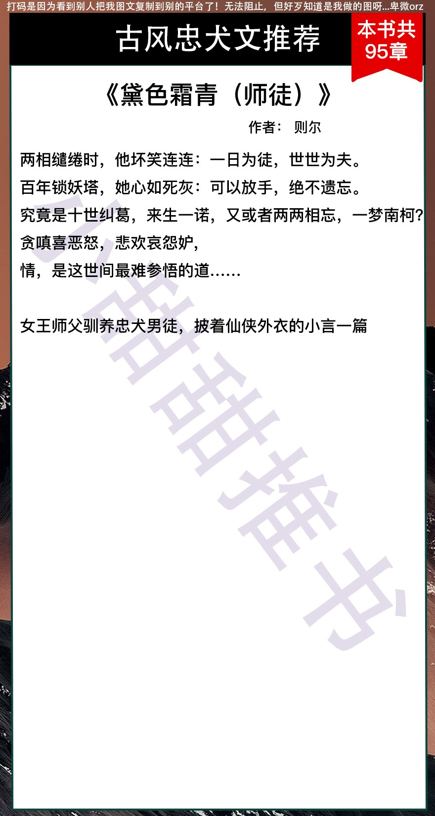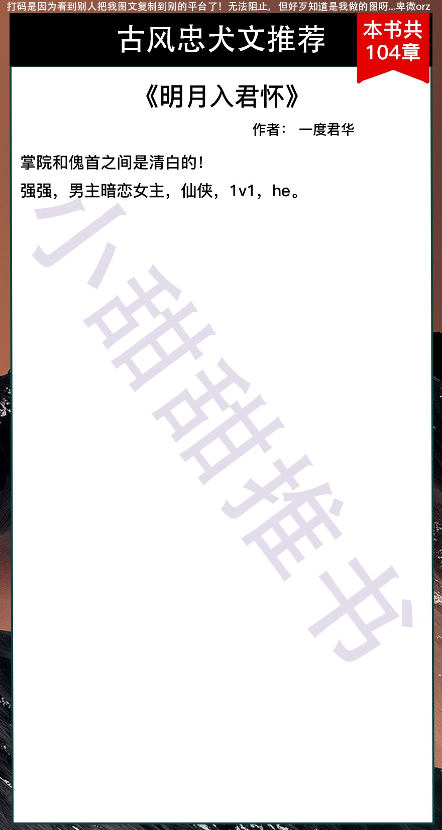 大家好,这期给大家推荐的是6本古风忠犬文,感受最忠诚美好的爱情!男主忠犬文!有仙侠文!