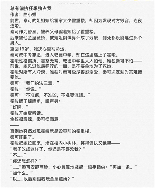 病宠成瘾,推一波男主心理有病偏执强爱的高甜文 大家好!今天小编为大家推荐几本男主心理有问题,偏执强爱的超甜宠文。 男主超牛大佬,只是每三天清空一次记忆。与女主以前就...