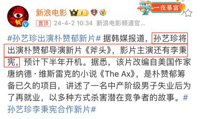 孙艺珍出演朴赞郁新片