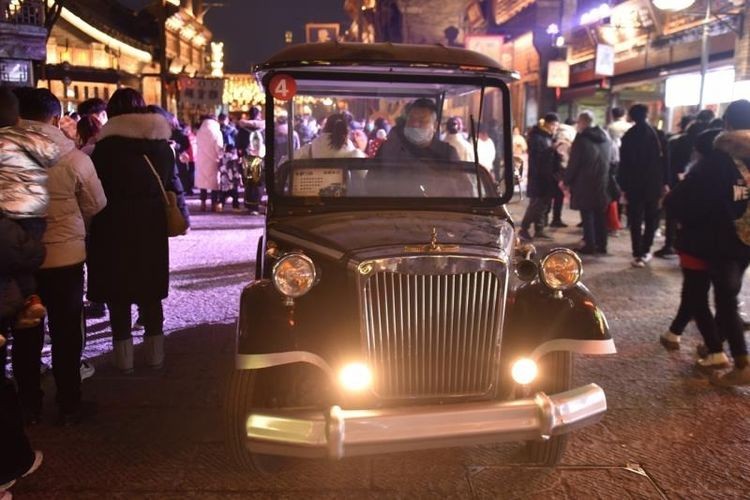 光影迷离中的电影小镇韵味十足。 黄包车、复古老爷车、治安警察、绅士名媛、民国情侣、商人、报童、旗袍佳人……行走在景区的人们步履缓缓,夜色下的街区让人沉浸。电影小镇夜晚上演大型灯光投影秀,高大的城墙上投射出绚丽多彩的灯光,光影变幻无穷,美轮美奂。