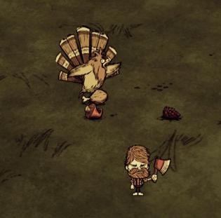 火鸡有10%的机率出现在浆果丛中,它吃浆果、蔬菜(包括曼德拉草)和水果,死亡后会掉落2个鸡腿。
