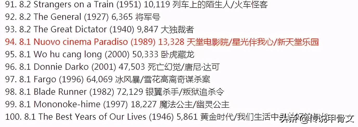 全球电影排名100,你看过几部