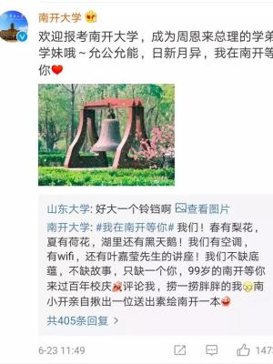 纷纷在这条高校微博战争的评论区“抢人第一”!