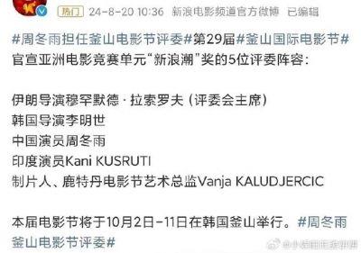 据了解,本届釜山电影节将于10月2日至11日在韩国釜山举行。届时,周冬雨将与来自世界各地的电影人共同见证电影的魅力,同时也将向全球展示我国电影的独特魅力。