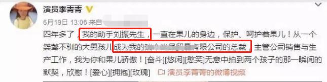 据悉,夫妻俩合开了一个卖茶叶的公司,而刘振一开始是李菁菁的助手,后来便成功“上位”成为她的丈夫,以及该公司的总裁。