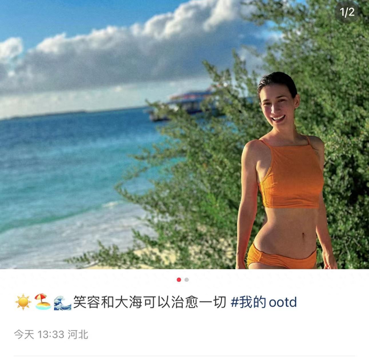 卢靖姗晒海边泳装照!纤腰翘臀无妊娠纹,与韩庚国外度假太甜蜜