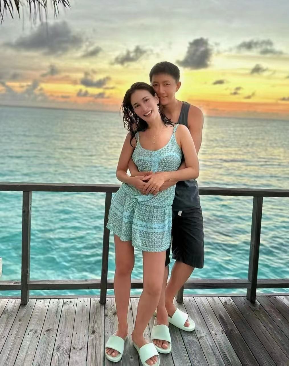工作之余,卢靖姗和韩庚还趁机带着家人在马尔代夫度假。