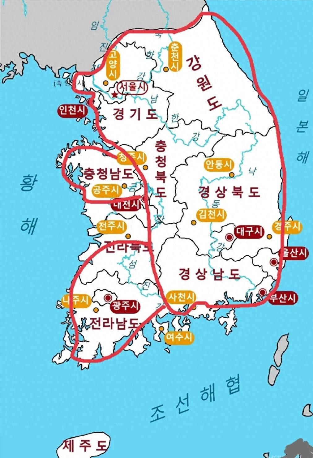 韩国地图犹如“困笼之猪”,三大城市位置也非常尴尬