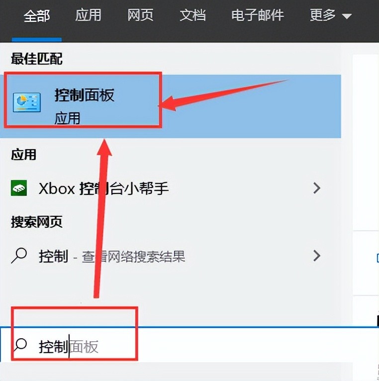 1、选择开始,点击控制面板,也可以使用win10小娜搜索控制面板;