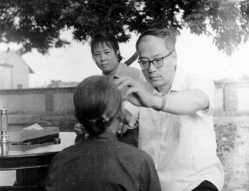 20世纪70年代,唐由之在医疗队为群众检查眼睛