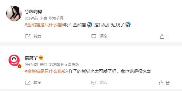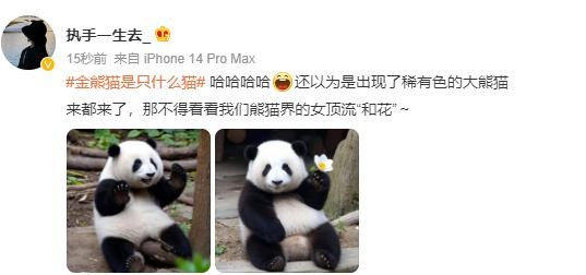 网友纷纷加入竞猜讨论:“金色的熊猫呗”“还以为是出现了稀有色的大熊猫。来都来了,那不得看看我们熊猫界的女顶流‘和花’~”“快快快,人手一只”